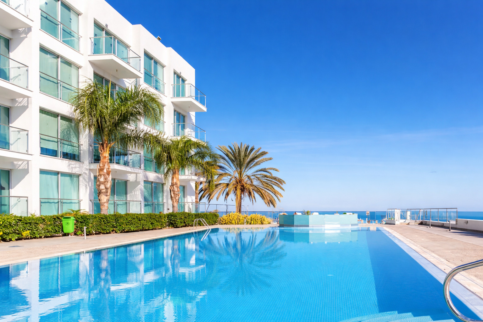 На территории комплекса расположен просторный общий бассейн, окружённый пальмами и наполненный солнечным настроением. А всего в нескольких минутах ходьбы — пляж с кристально чистой водой, где можно наслаждаться купанием, солнцем и водными развлечениями.