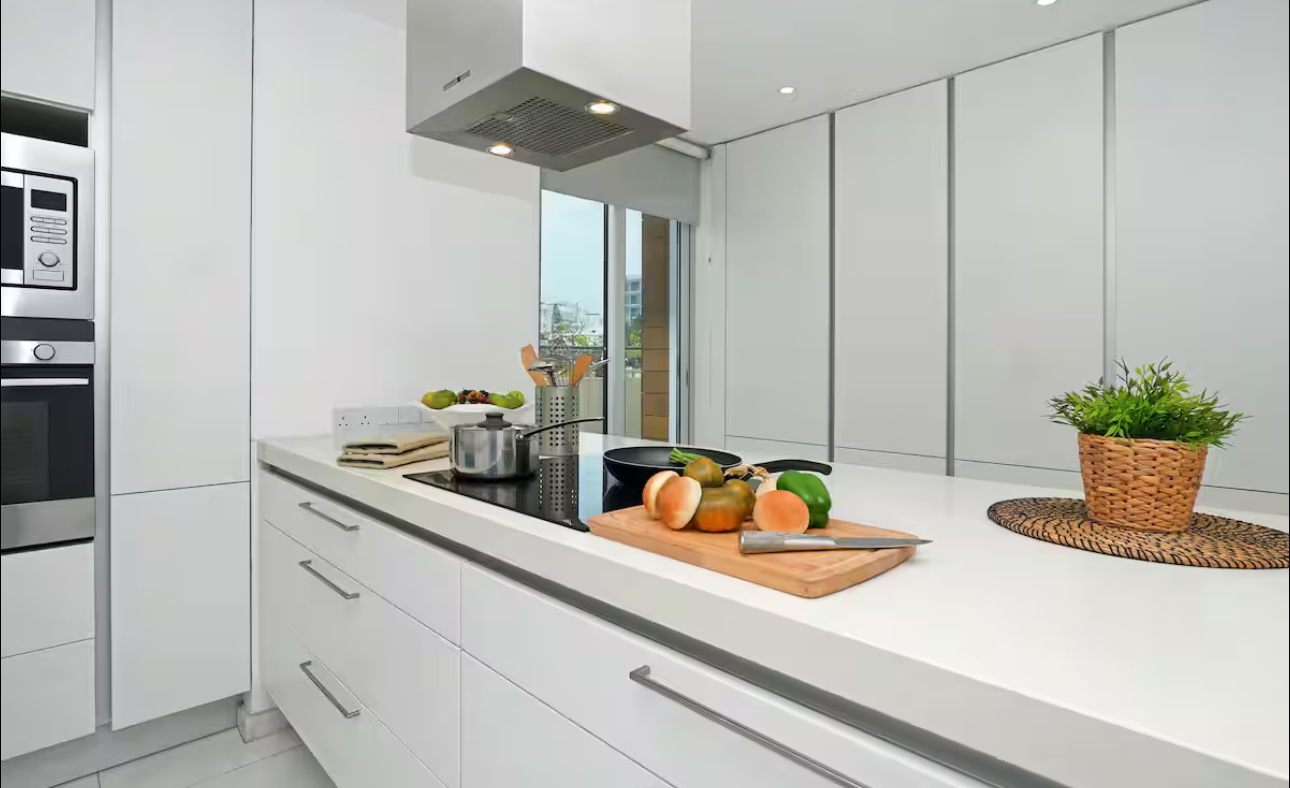 Полностью оборудованная кухня подойдёт как для лёгких перекусов, так и для полноценного приготовления еды. Большой деревянный обеденный стол с лёгкостью разместит всех гостей.
