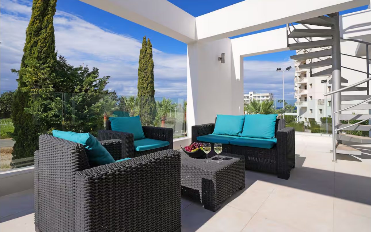 Эта современная вилла — отличный выбор для тех, кто ищет спокойное и комфортное проживание в пешей доступности от моря. Вилла расположена в тихом районе, всего в нескольких минутах ходьбы от живописного пляжа Flamingo Bay и ресторанной улицы Протараса.