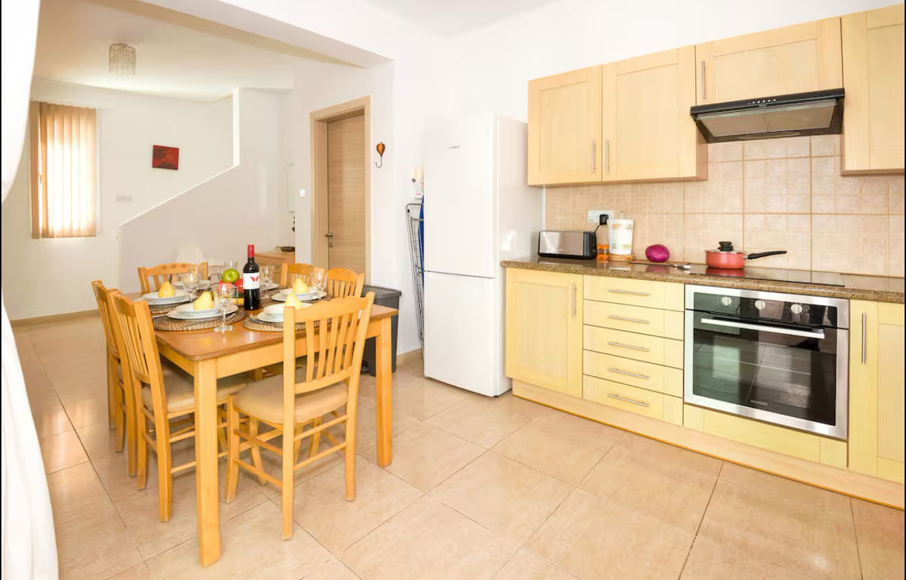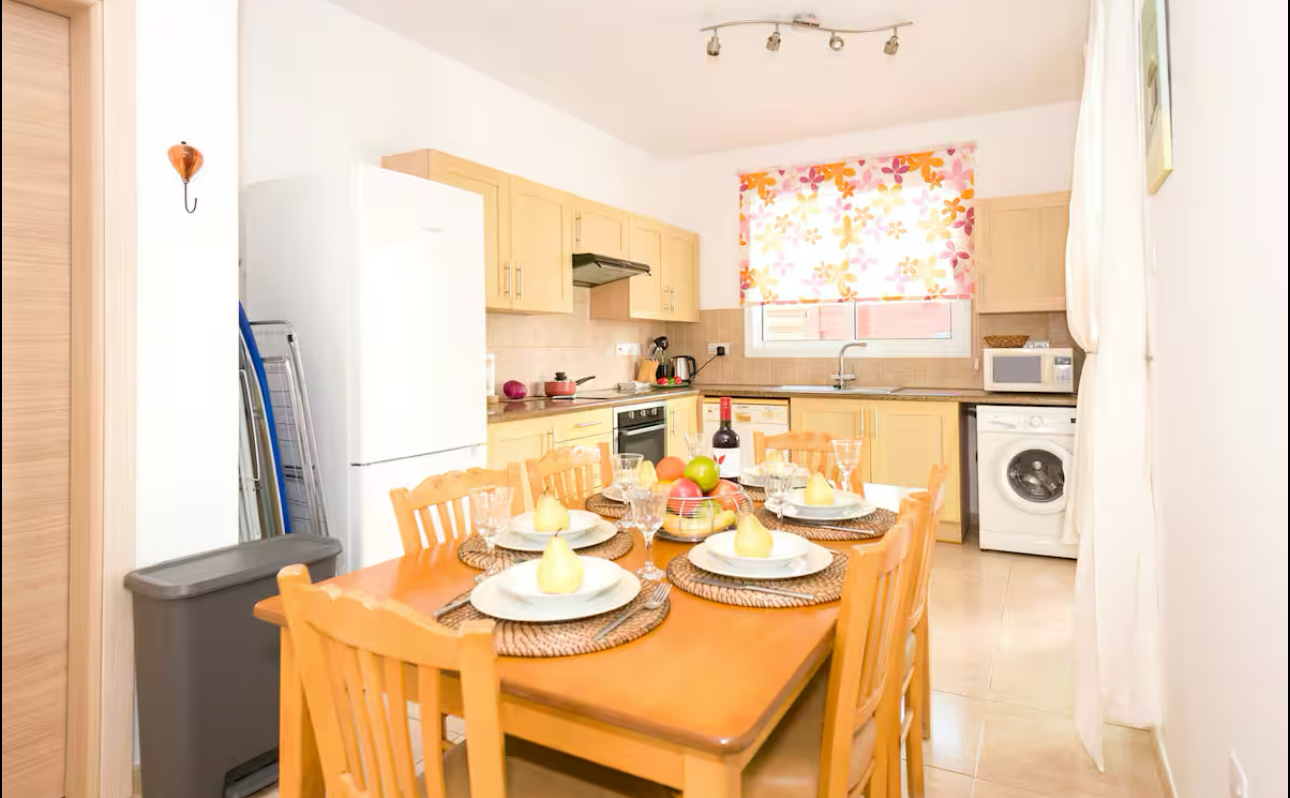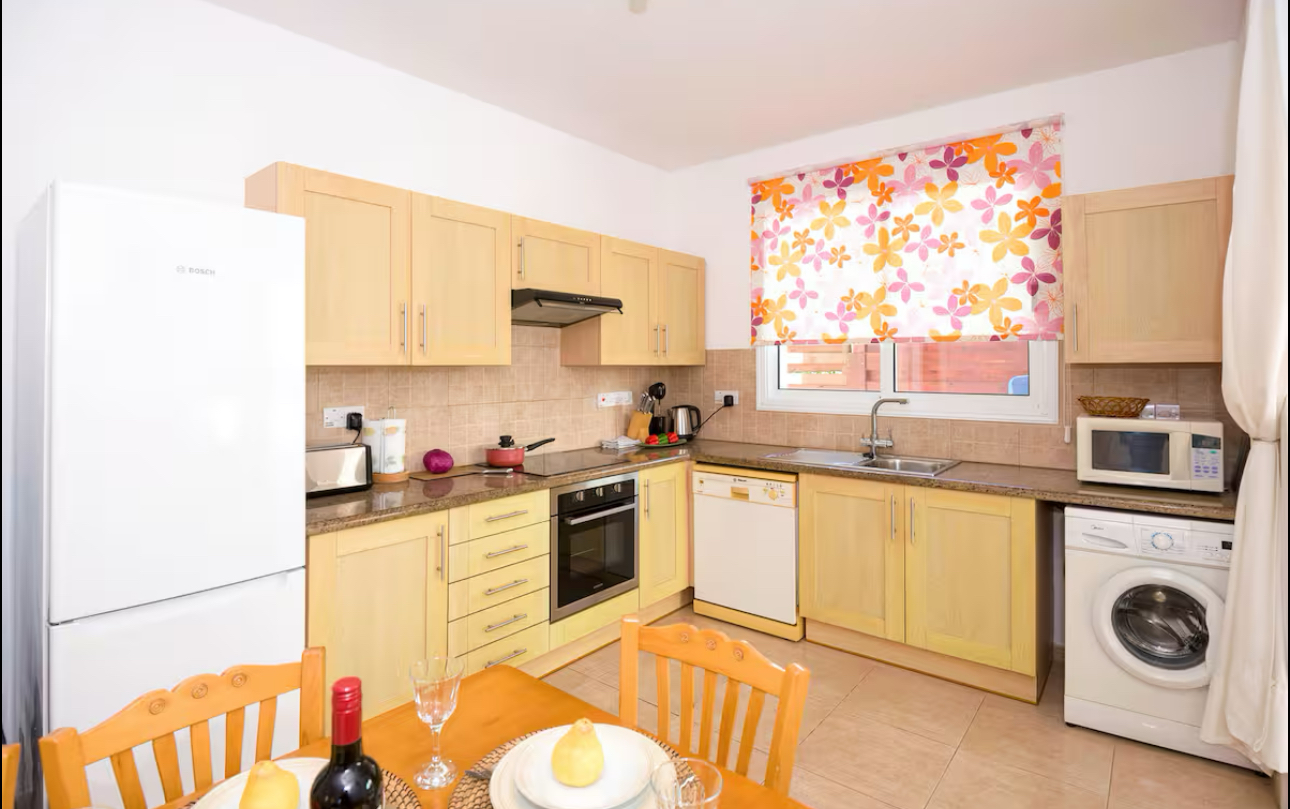 • Полностью оборудованная кухня: холодильник с морозильной камерой, плита, духовка, посудомоечная машина, кофемашина, чайник, тостер, блендер