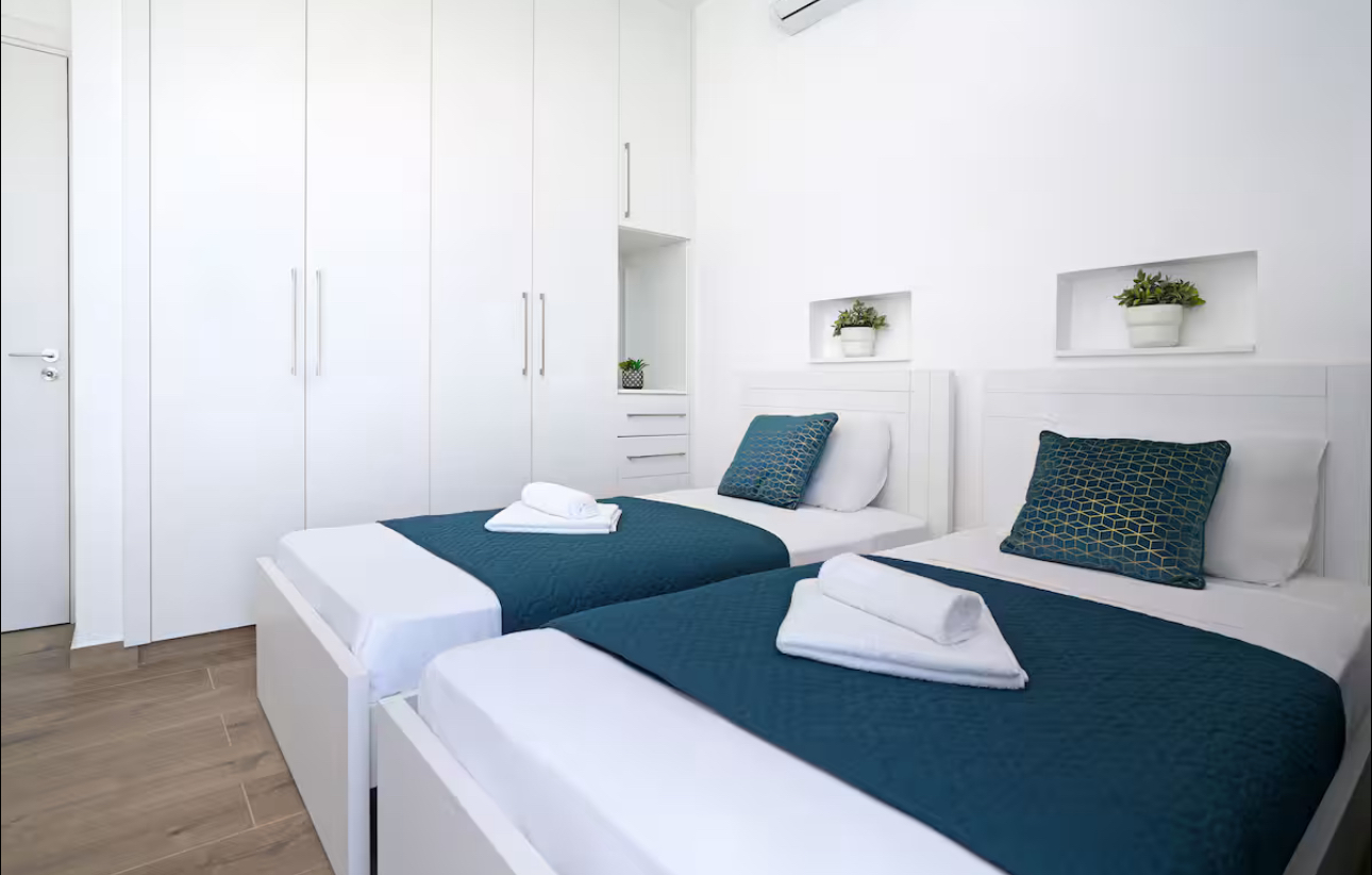 • Две уютные спальни с двумя односпальными кроватями в каждой — идеальны для друзей, подростков или детей.