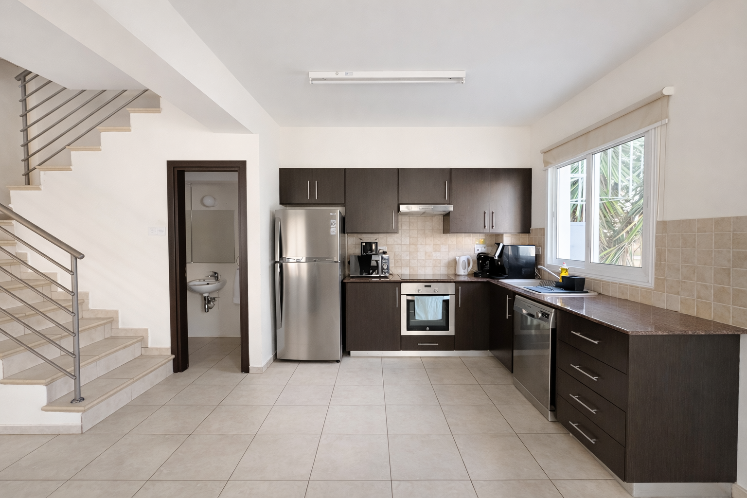 На первом этаже таунхауса расположены полностью укомплектованная кухня с посудомоечной машиной, современной кофеваркой, фильтром для воды высокой степени очистки, что позволяет пить воду из под крана даже малышам.