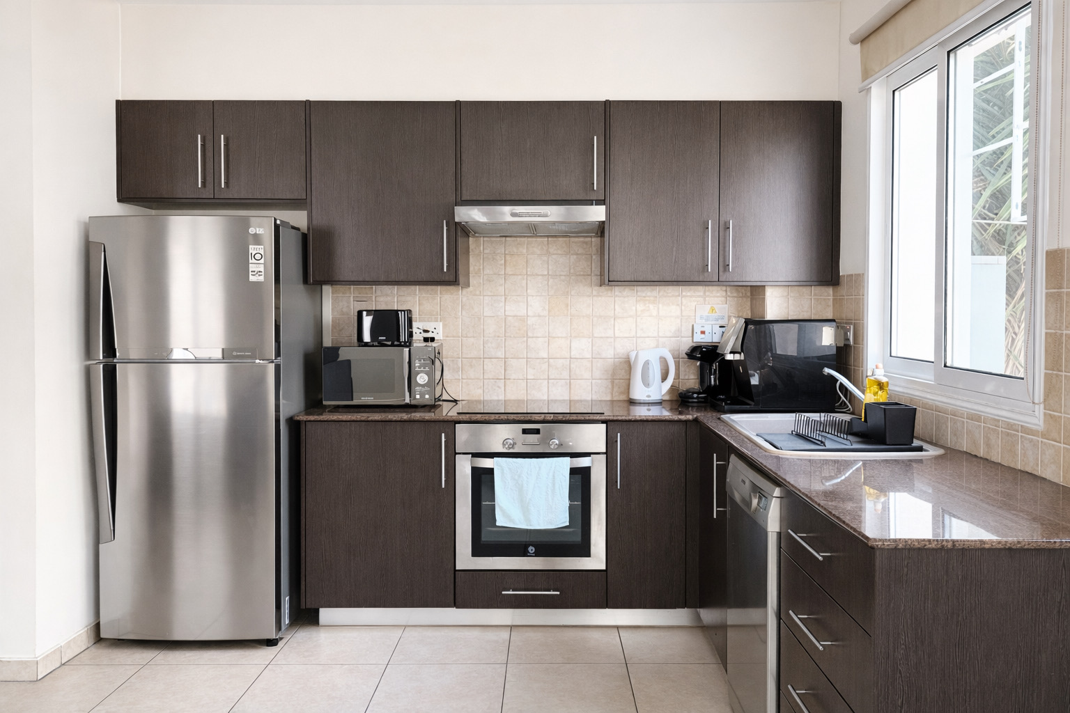 Просторный 2 спальный таунхаус, с открытого плана гостиной, современной техникой и кухонными принадлежностями, патио и всеми удобствами расположился в комплексе Mythical Sands Resort всего в нескольких минутах от главной улица Кеннеди Авеню и 700 метрах от пляжа Малама бич.