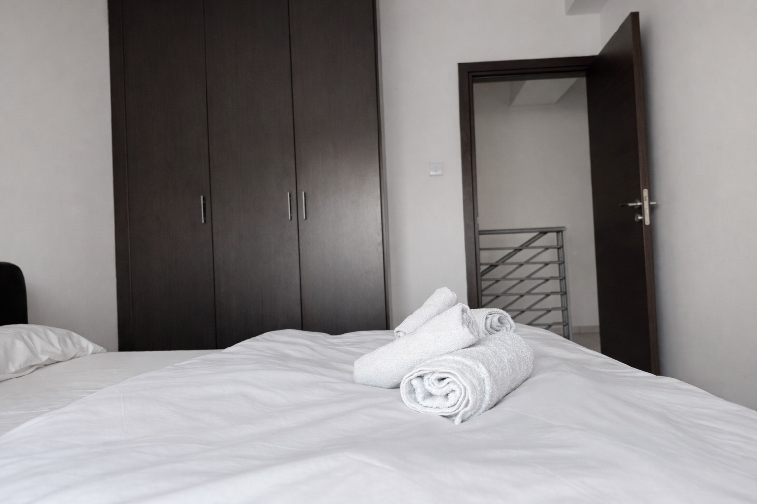 В каждой спальне установлены вместительные шкафы, также есть балкон.