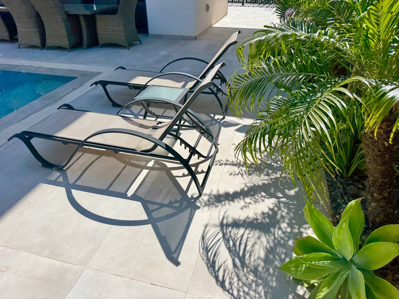 Снаружи виллы находится частный бассейн и оборудованная зона отдыха с удобной мебелью, шезлонгами и барбекю — отличное место для отдыха днём и уютных ужинов вечером.