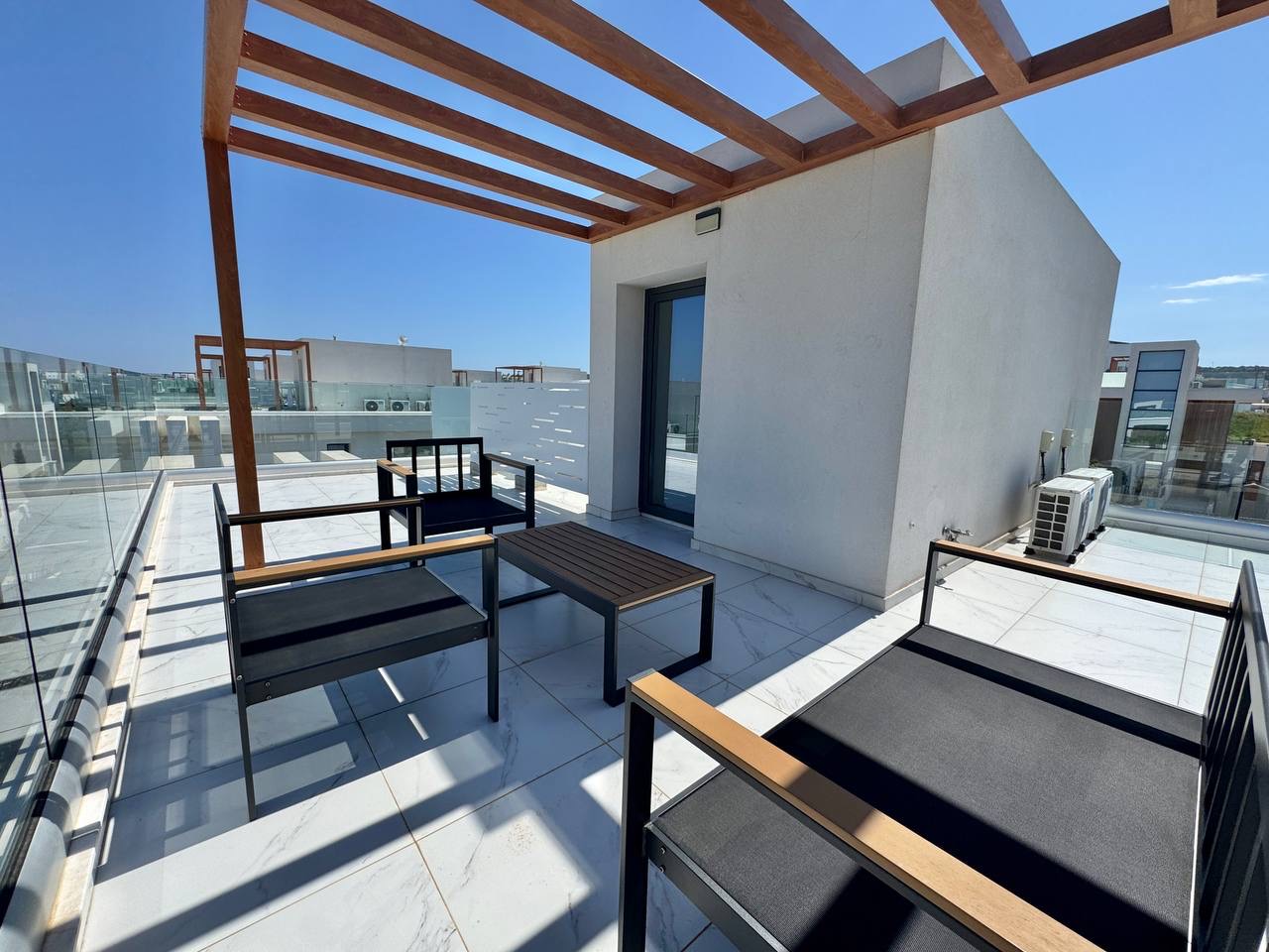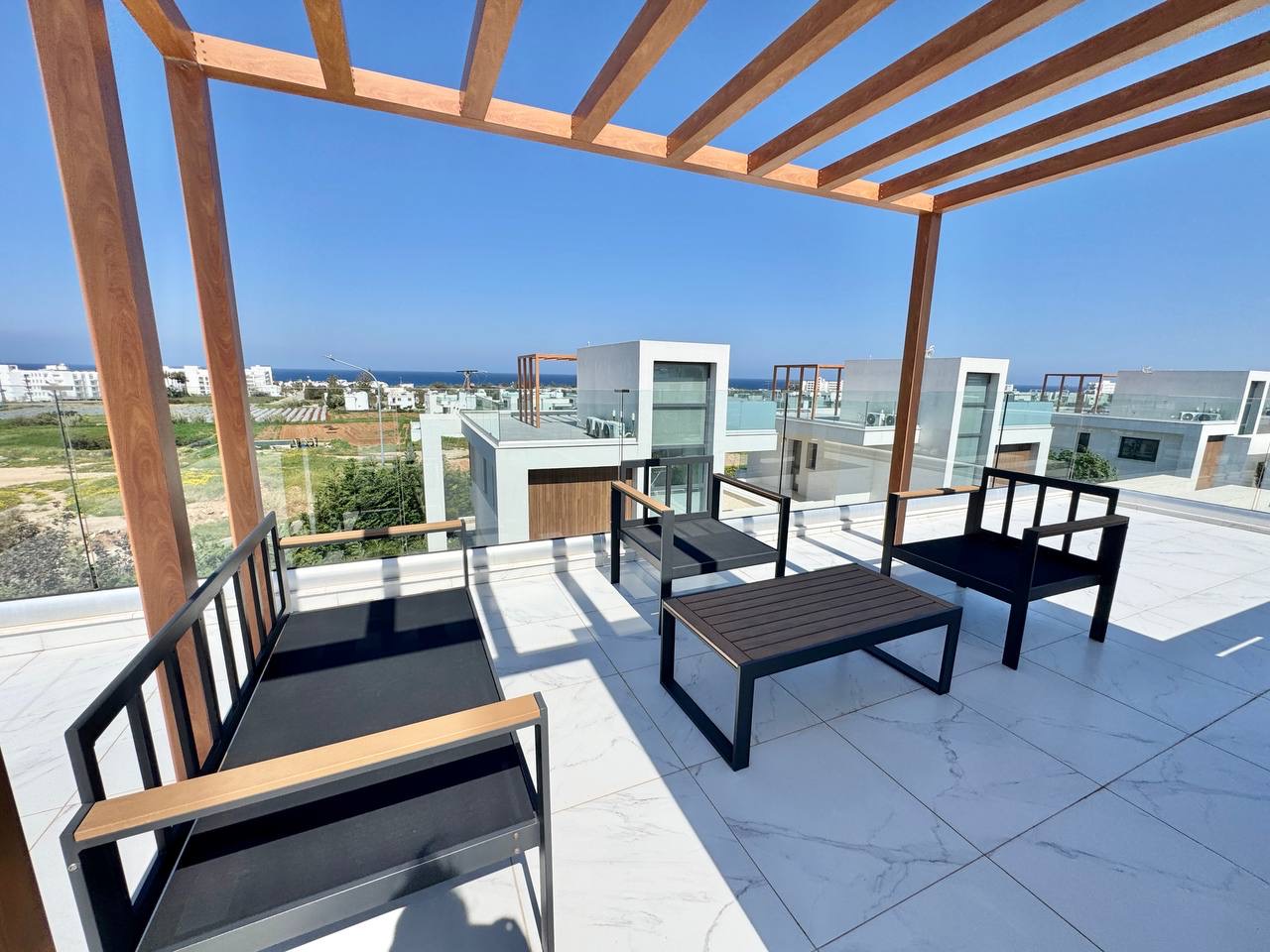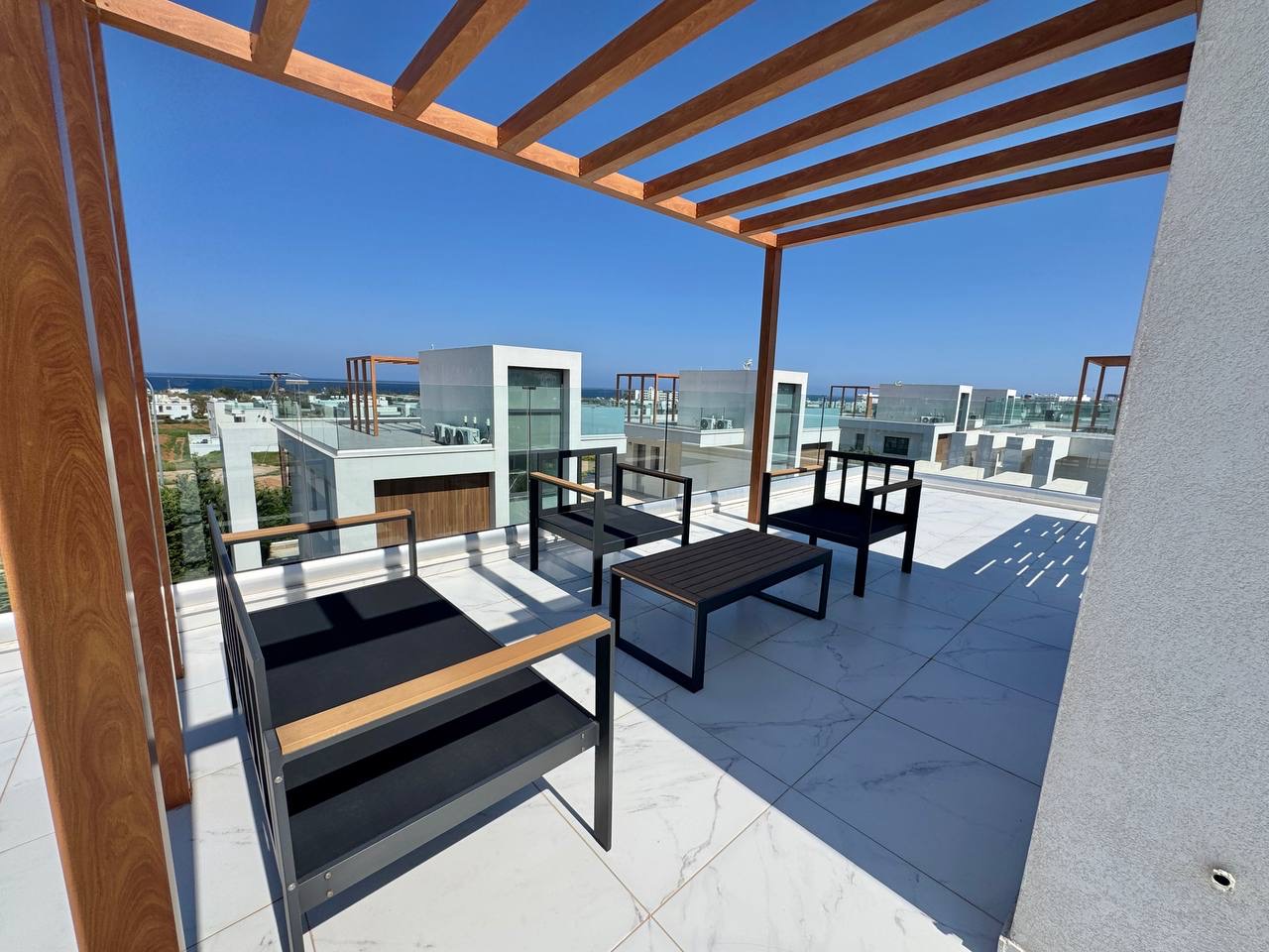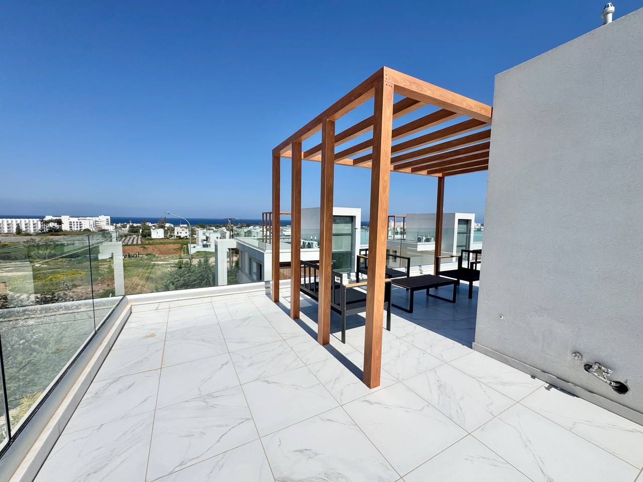 Третий этаж предлагает приятный бонус — просторную террасу на крыше с зоной отдыха и видом на море, где можно наслаждаться утренним кофе или вечерним отдыхом на свежем воздухе.
