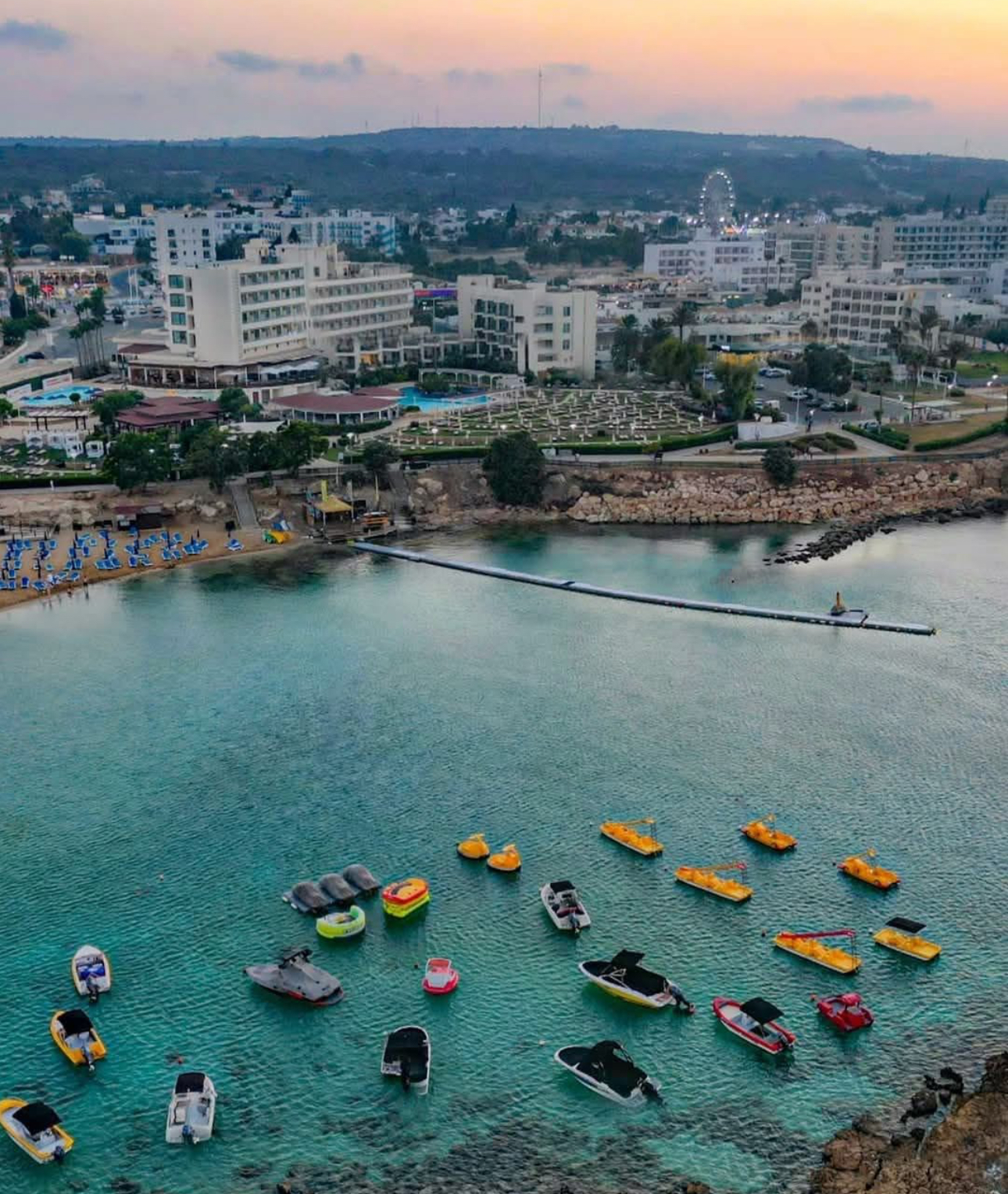 Курорт Protaras славится своими пляжами, семейной атмосферой и развитой инфраструктурой. Здесь доступны водные виды спорта, прогулки вдоль живописной набережной и большое разнообразие ресторанов. В соседнем Ayia Napa — активная ночная жизнь и дополнительные развлечения.
