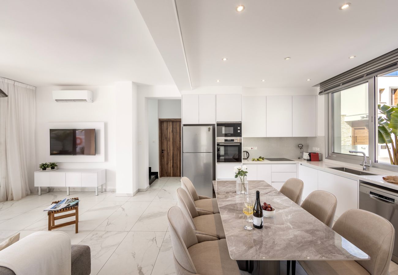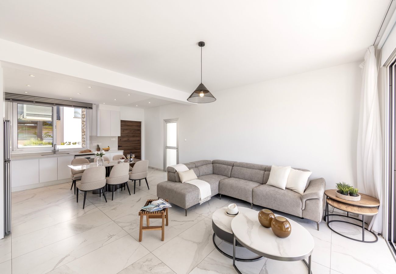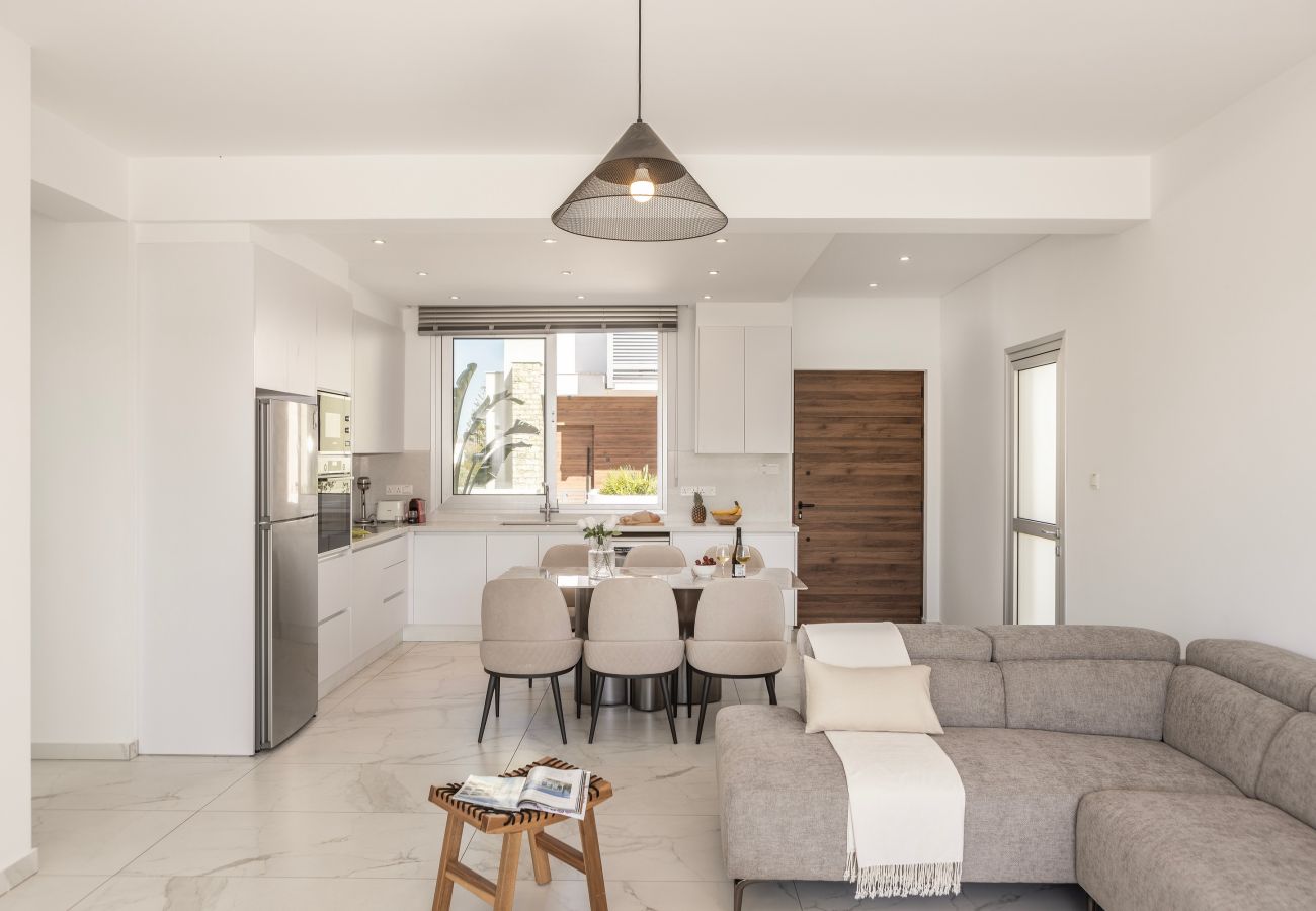 Protaras Holiday Villa Sol e Mar — это новая современная и роскошная вилла, расположенная всего в нескольких минутах ходьбы от центральной улицы Протараса (Central Protaras Strip) и менее чем в 10 минутах от пляжа Sunrise Beach — одного из лучших пляжей Кипра с голубым флагом, кристально чистой водой и мягким белым песком.